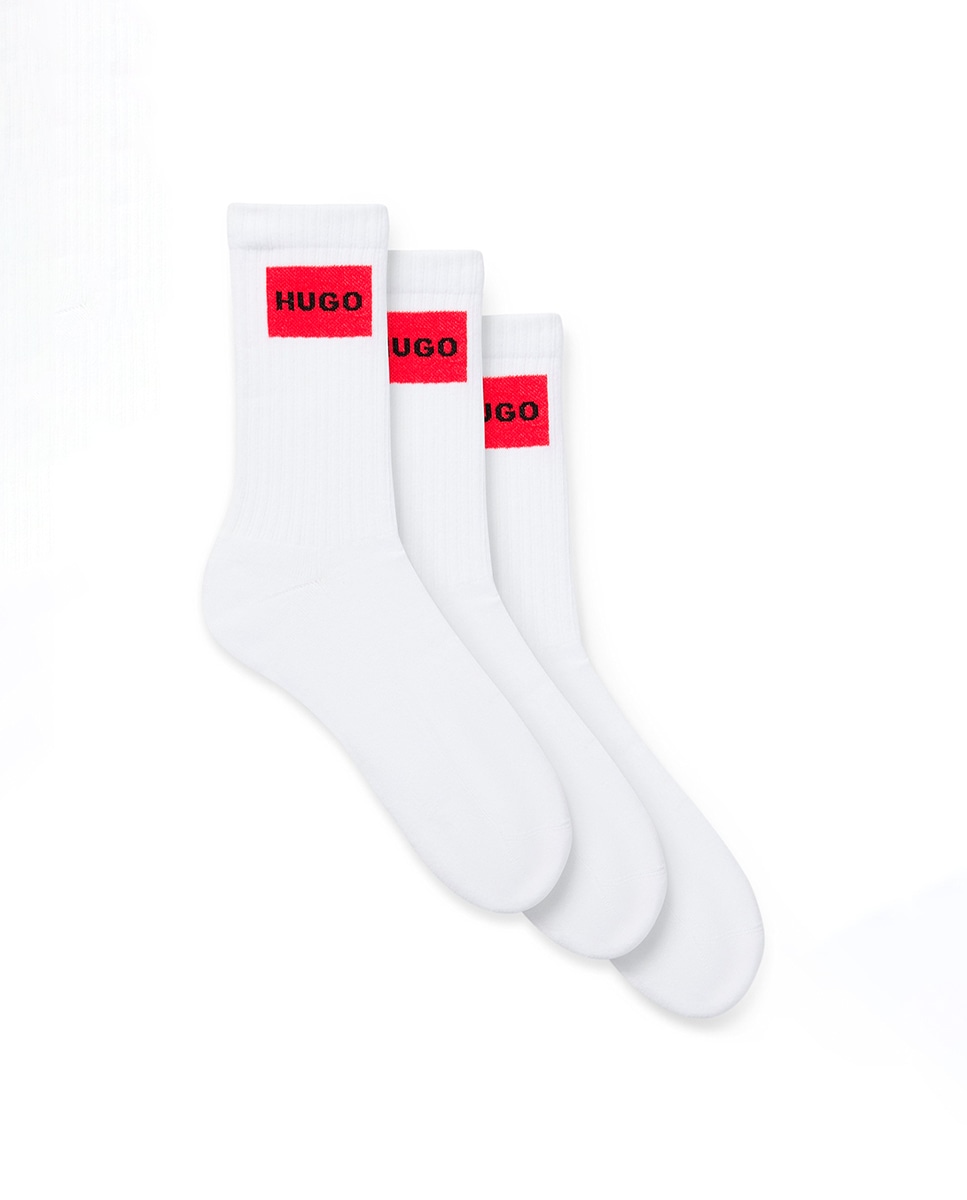 Embalagem de Três Pares de Meias Curtas com Etiquetas com Logótipo - Vermelho