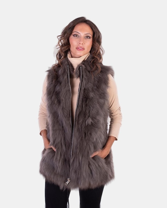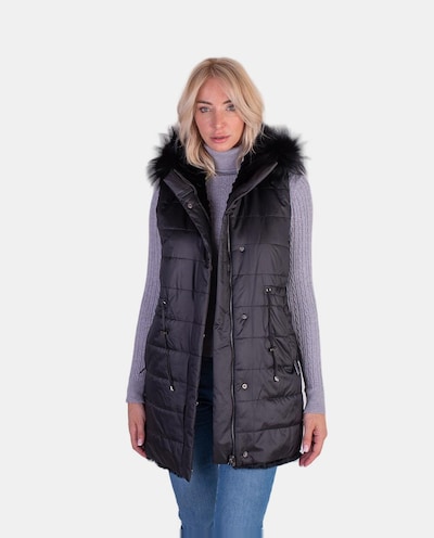 Colete de Pelo de Coelho Rex Reversível com Capuz