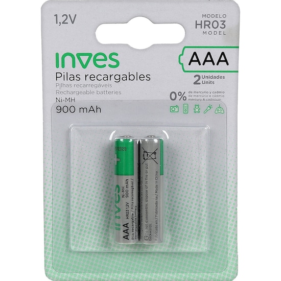 Pilha Recarregável HR03 AAA 1,2 V 900 mAh (x2)