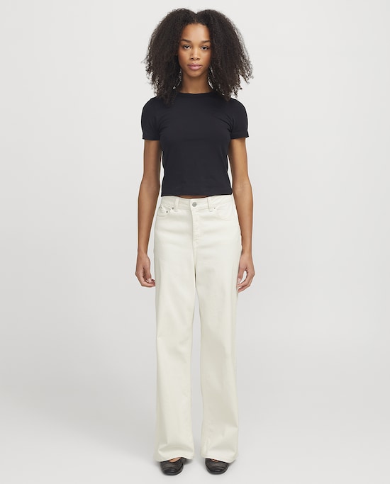 Jeans wide leg com cintura subida