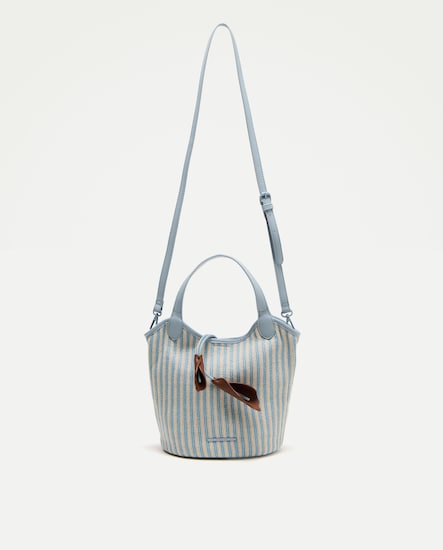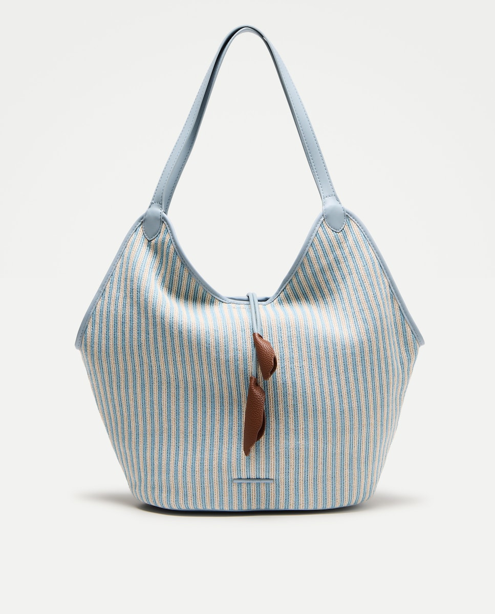 Mala de Ombro em Tecido às Riscas com Conta Floral