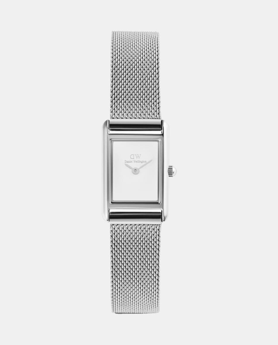 O Bound Mini Sterling oferece o design geométrico da coleção Bound num formato mais pequeno. O seu mostrador retangular branco combina com uma bracelete de malha prateada para um visual elegante e minimalista. Leve e confortável, é ideal para quem prefere um estilo discreto.