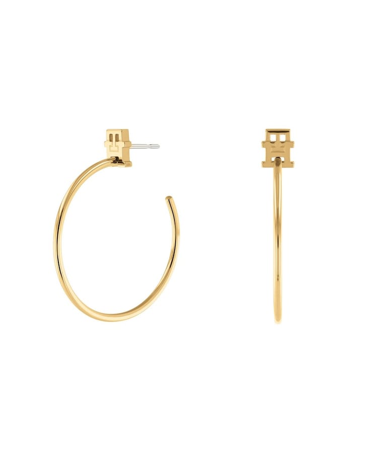 Brincos de argola em aço inoxidável banhado a ouro com logótipo.