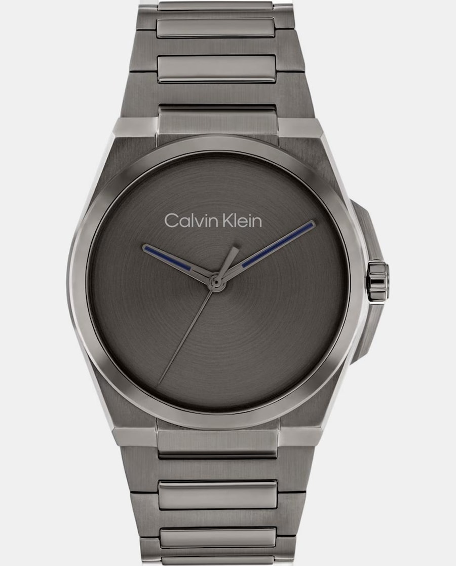 Relógio de 3 ponteiros. Caixa em aço inoxidável de 41 mm. Mostrador cinzento escuro com indicadores. Pulseira de elos em aço inoxidável.