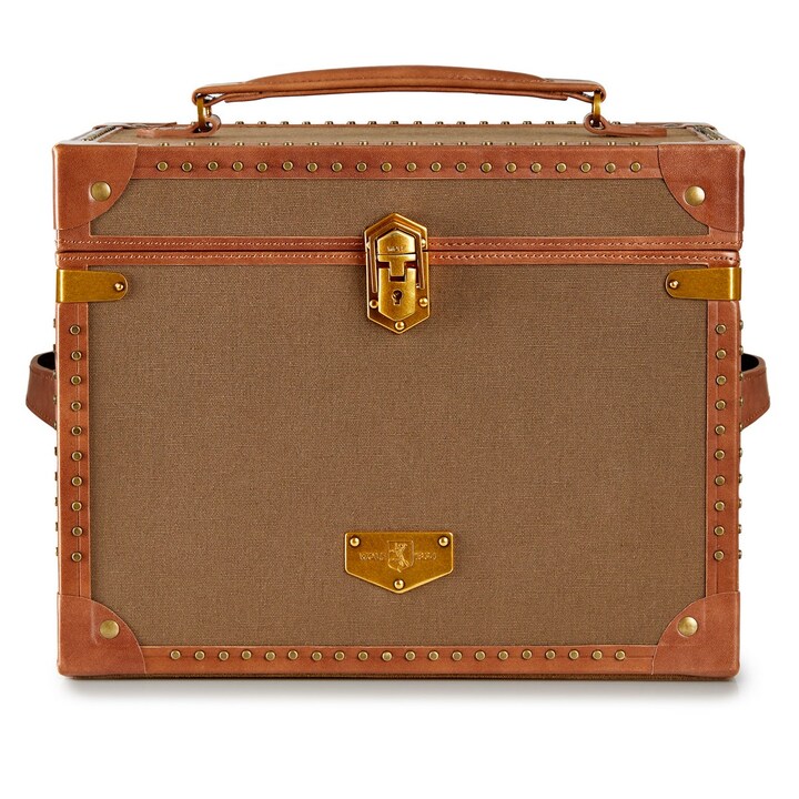 Ida é uma caixa de joias estilo mala com exterior em lona reciclada em tons suaves luxuosos e acabamentos em couro de alta qualidade e puxadores nas gavetas. A combinação perfeita entre elegância e funcionalidade.