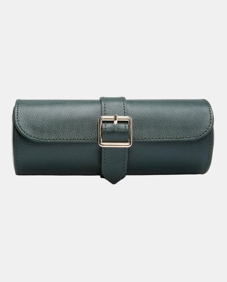 Rolo de viagem para proteger os relógios. Inclui espaço para 3 relógios e possui uma cápsula secreta para joias.