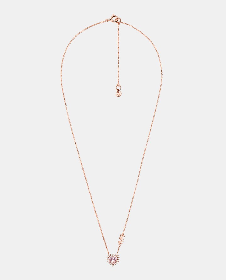 Consiga facilmente um look luxuoso com a nossa coleção Kors Brilliance. Este pendente, elaborado por especialistas em prata esterlina banhada a ouro rosa com incrustações de cristais e nanogema em corte coração na cor morganita, oferece o toque certo de glamour para o uso diário. Use-o sozinho ou combine-o com a pulseira deslizante ou os brincos de botão a condizer.