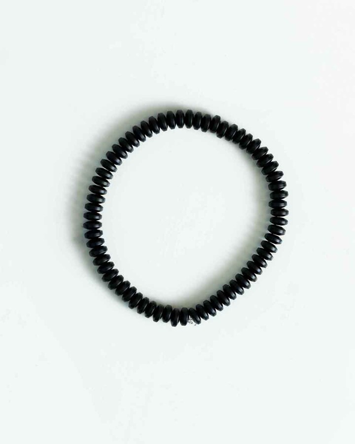 Pulseira de discos preta. Confecionada em 100% pedra natural. Ajustável através de elástico.