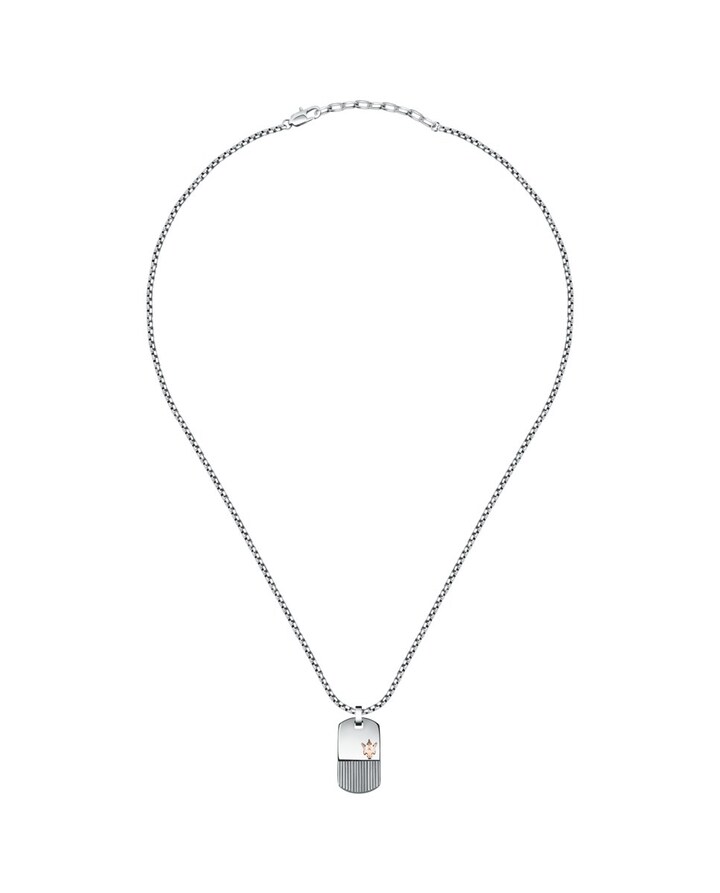Colar Maserati de Homem, ref. JM121ATK08, fabricado em aço inoxidável e ouro. Com um comprimento de 60cm de comprimento tem um fecho de mosquetão. A coleção de Joias Maserati é composta por elegantes pulseiras e colares com preciosos detalhes que mesclam desportividade e elegância em chave contemporânea.