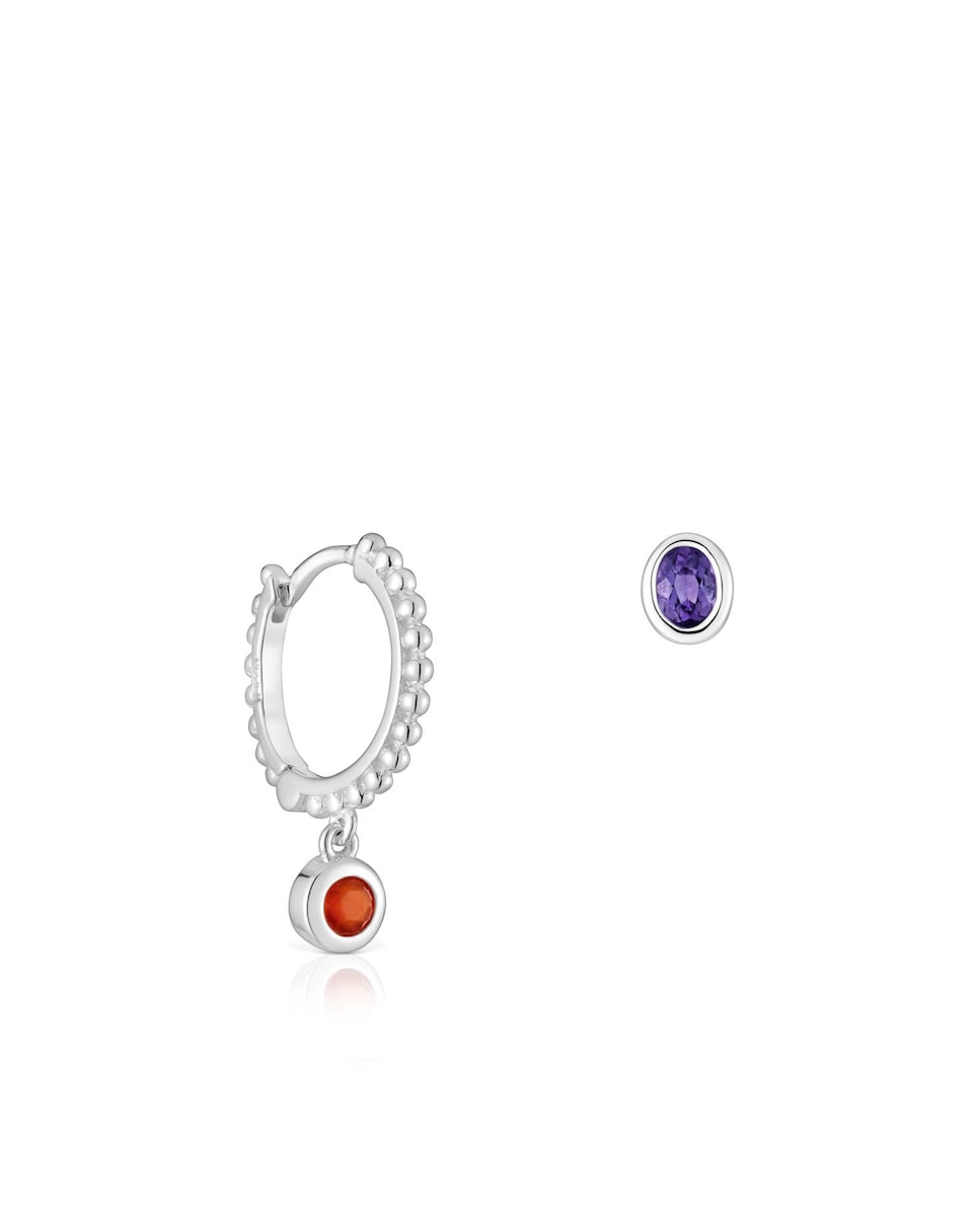 Brincos Basic Colors Curto e Comprido de Prata e Pedras