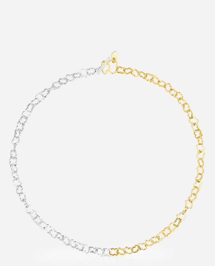 Colar TOUS Carrusel com argolas com motivo urso com banho de ouro 18 kt sobre prata e prata de primeira lei. Comprimento: 43cm. Fecho barra. Técnica de produção: Fundição. Peça fabricada com prata de primeira lei com banho de ouro de 18 a 23 kt e 3 micras de espessura. Esta qualidade garante uma maior durabilidade da peça.