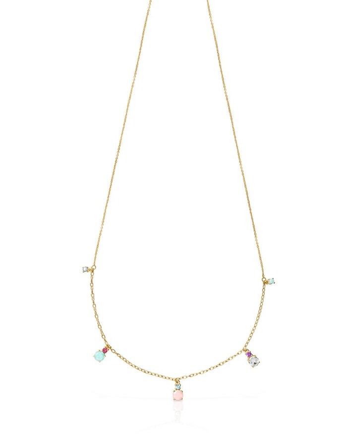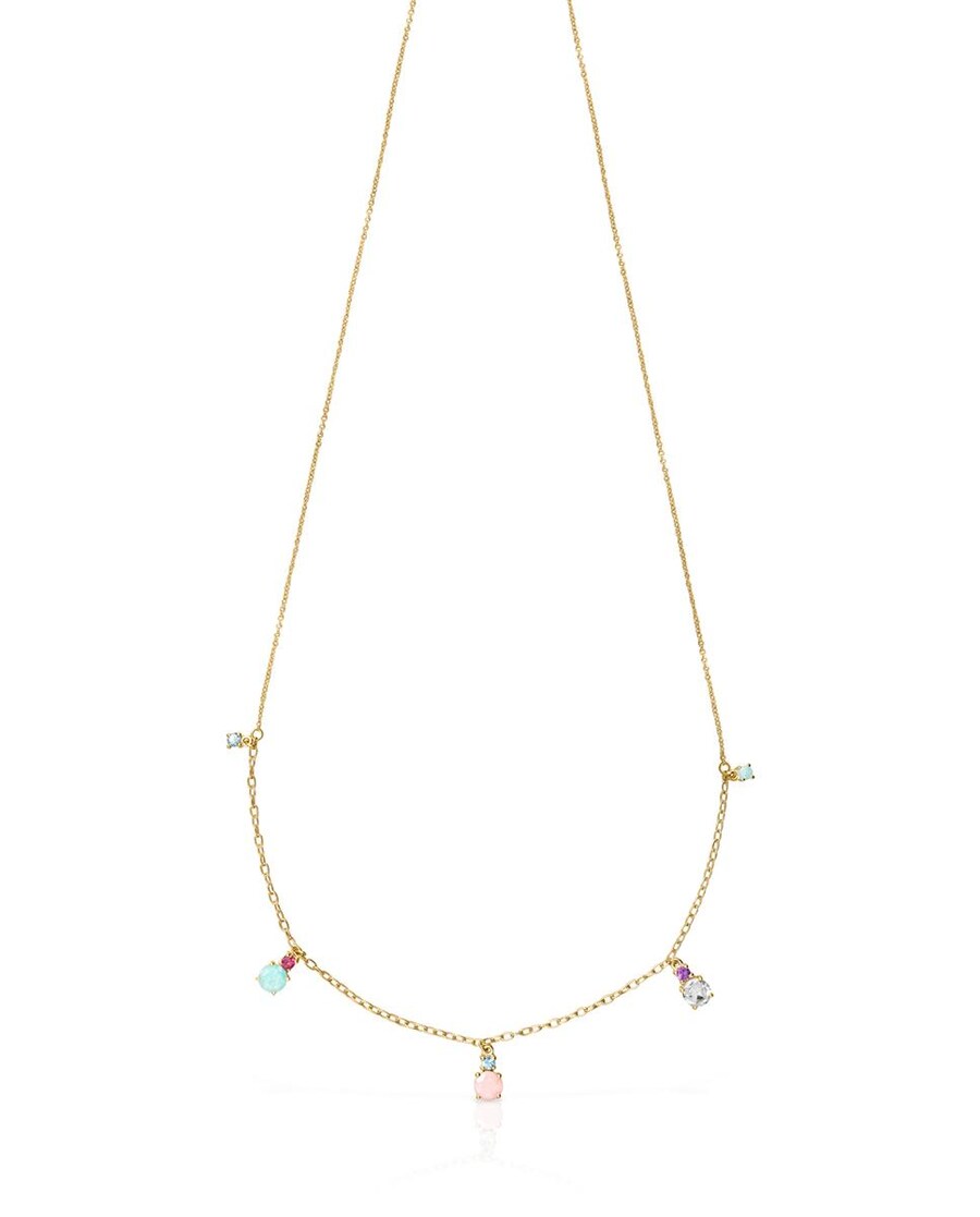 Colar Mini Ivette de Ouro Amarelo com Gemas