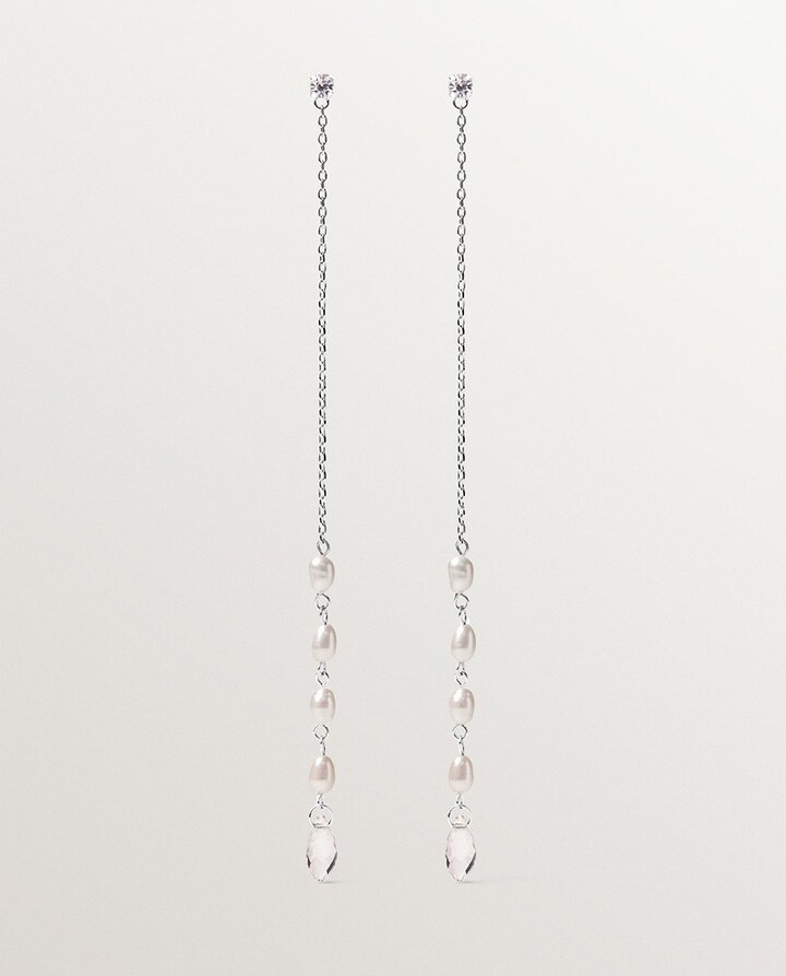 Brincos Compridos com Pérolas Barrocas e Cristais