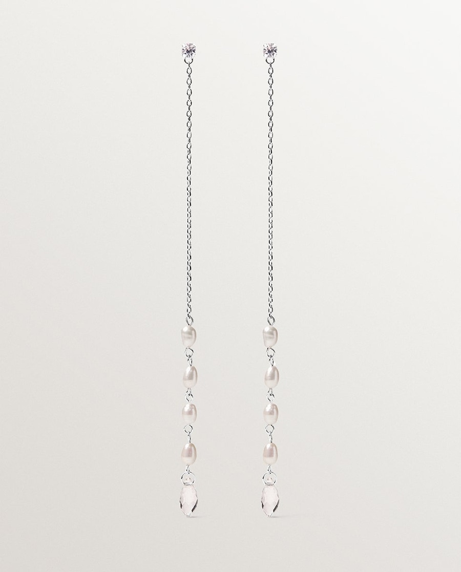 Com silhueta alongada, estes brincos da coleção Wedding combinam o latão de alta qualidade com as pérolas barrocas e os subtis cristais. Uma joia com muita personalidade, perfeita para elevar qualquer look. Esta joia contém pérolas naturais.