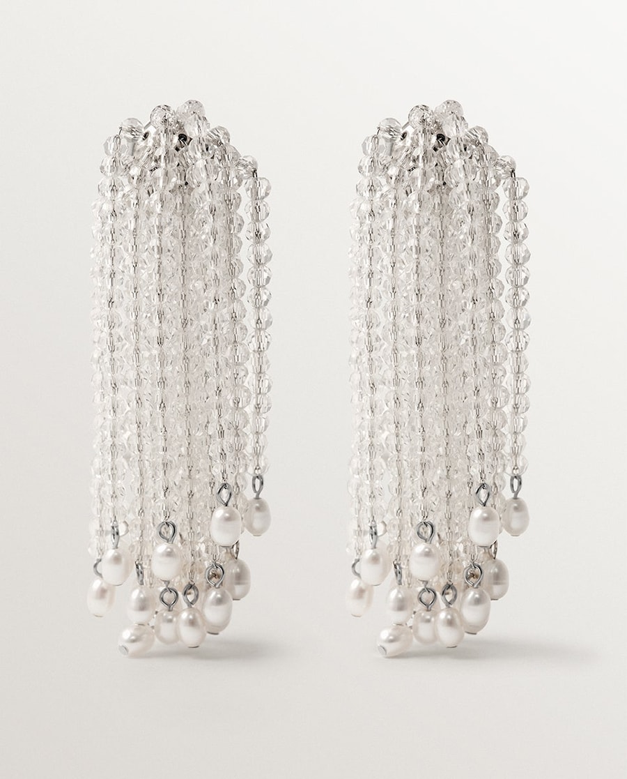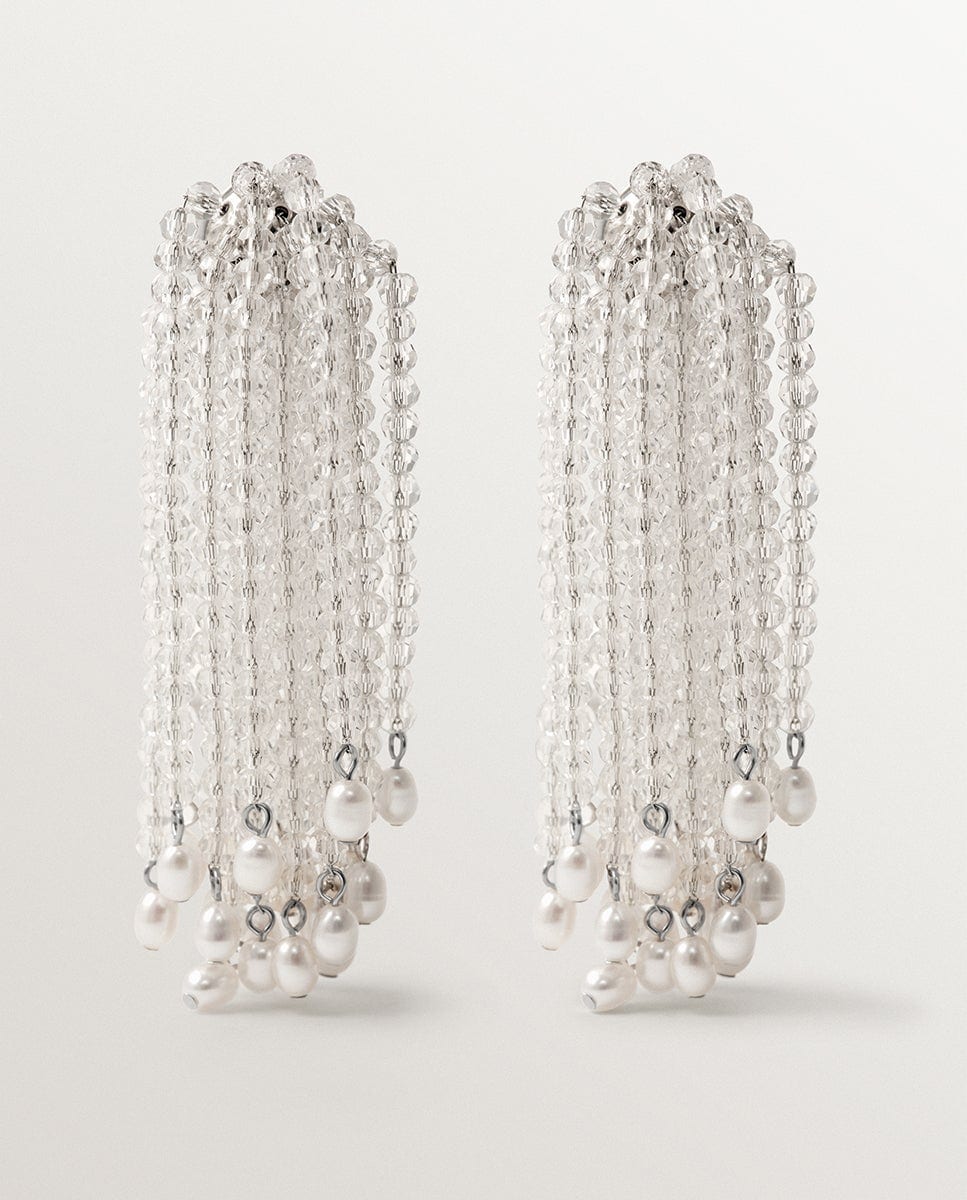 Brincos Compridos em Cascata com Pérolas Barrocas e Cristais