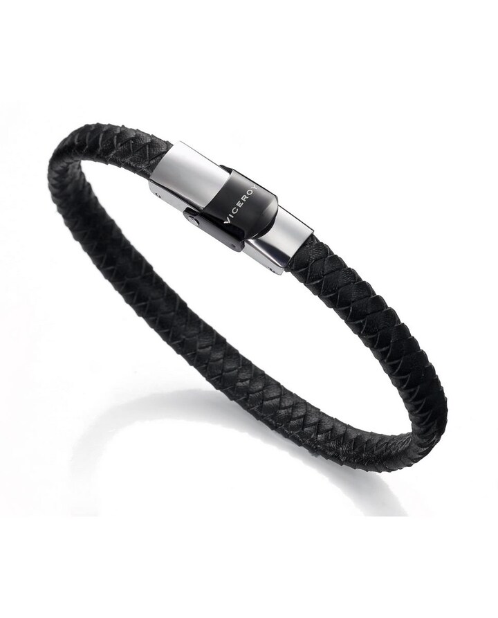 Pulseira Yard em aço bicolor com botão IP preto e cordão preto entrançado.