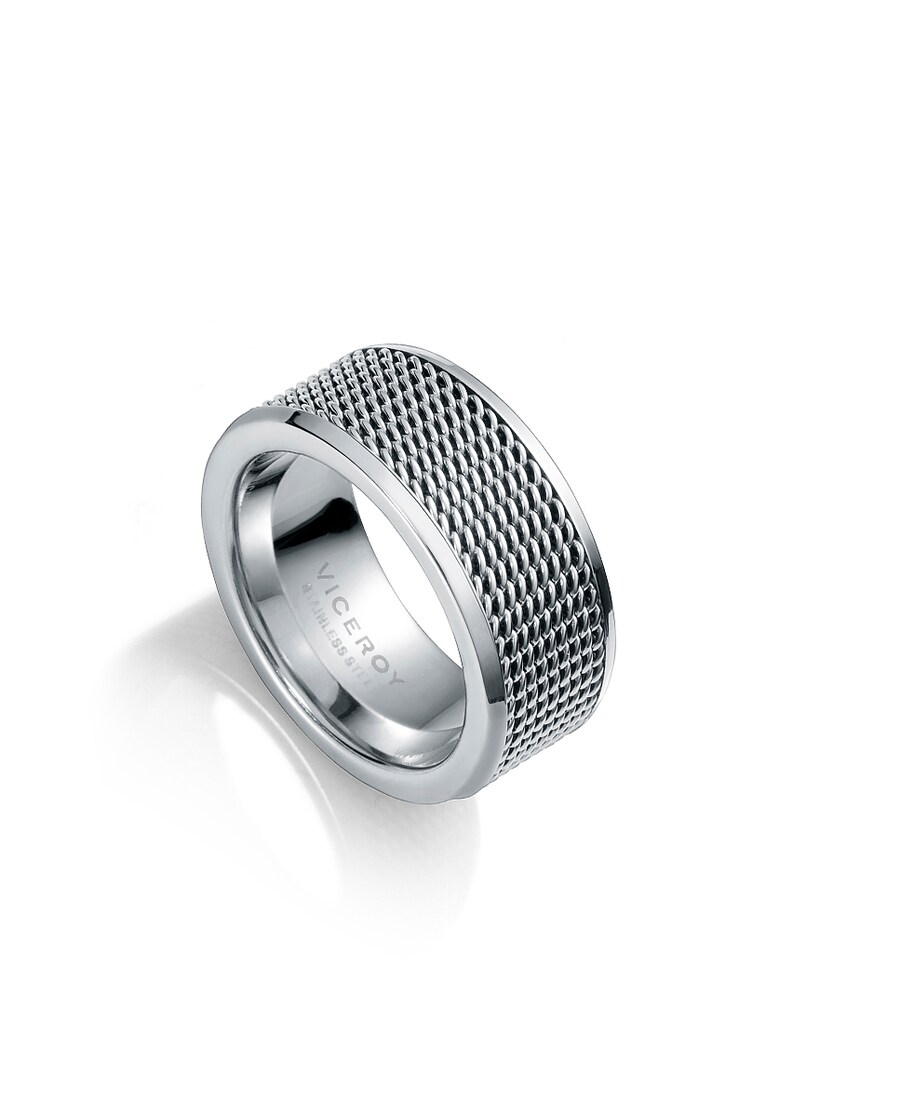 Anel de Homem Viceroy Air com design reto de 9 mm de largura com malha de aço. Disponível em Tamanho 20 (diâmetro interior 19,10 mm), Tamanho 22 (diâmetro interior 19,74 mm), Tamanho 24 (diâmetro interior 20,37 mm), Tamanho 26 (diâmetro interior 21,01 mm).