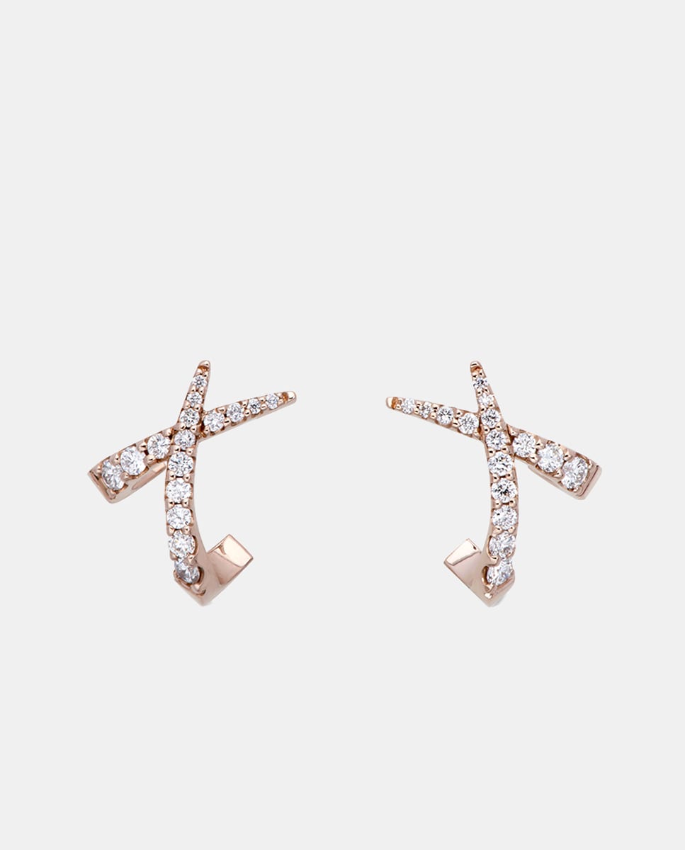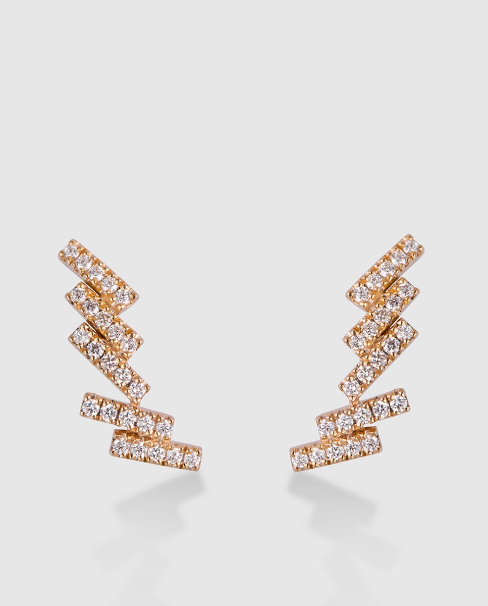 Brincos Skiline de Ouro e Diamantes - Rosa