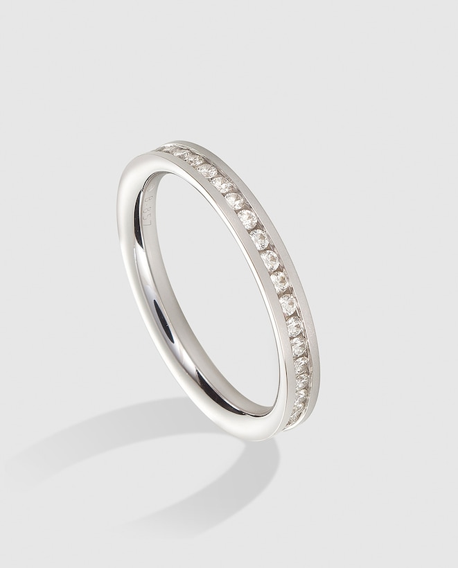 Anel Meia Aliança de Ouro Branco e Diamantes Diamonds
