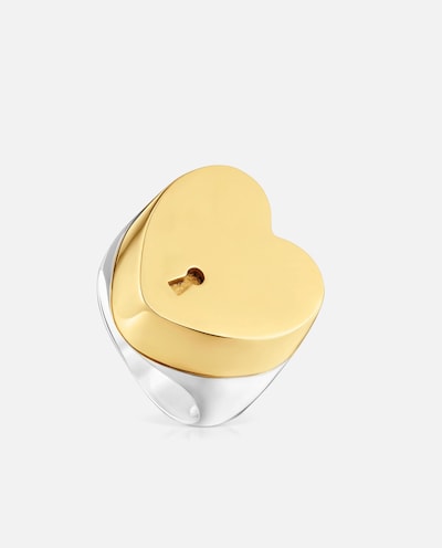 NovoAristocrazyAnel Tipo Selo Aquário de Prata 925 com Banho em Ouro Amarelo de 18k e Cristal de RochaAdicionar