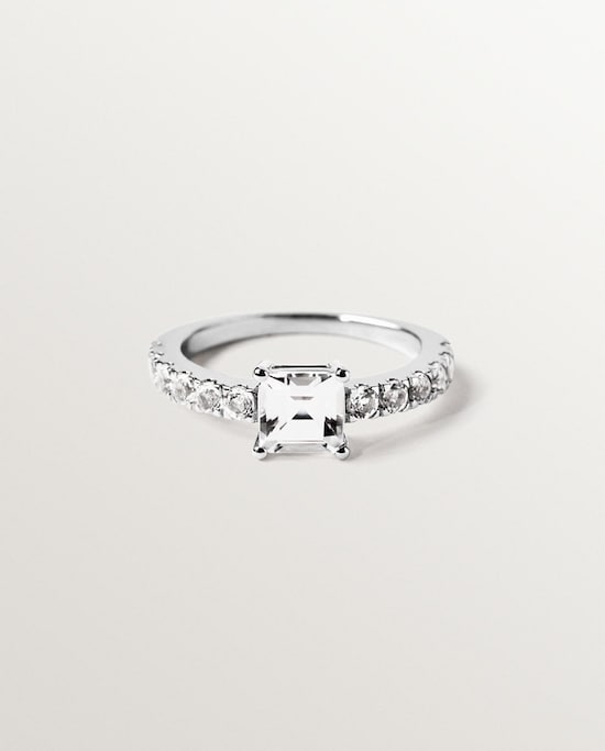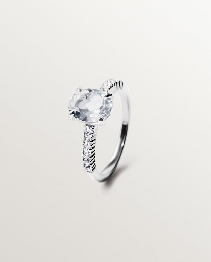 Anel Solitário de Ouro Branco e Diamante Diamonds