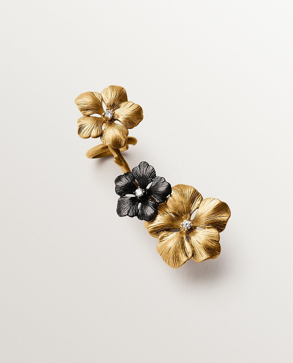 NovoAristocrazyPendente Individual Trepador Banhado em Ouro Amarelo com Cristais e Motivos de FlorAdicionar