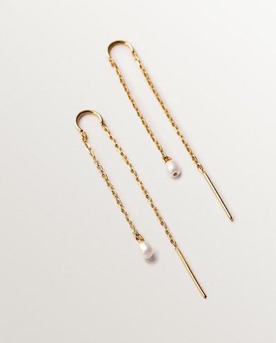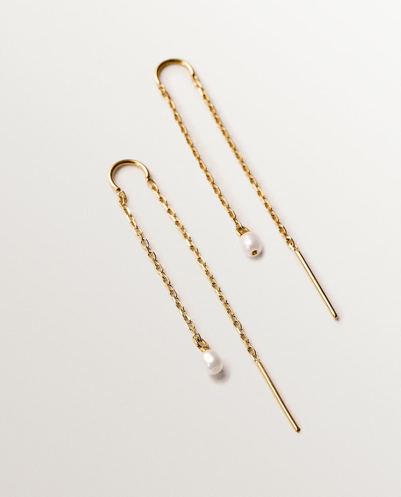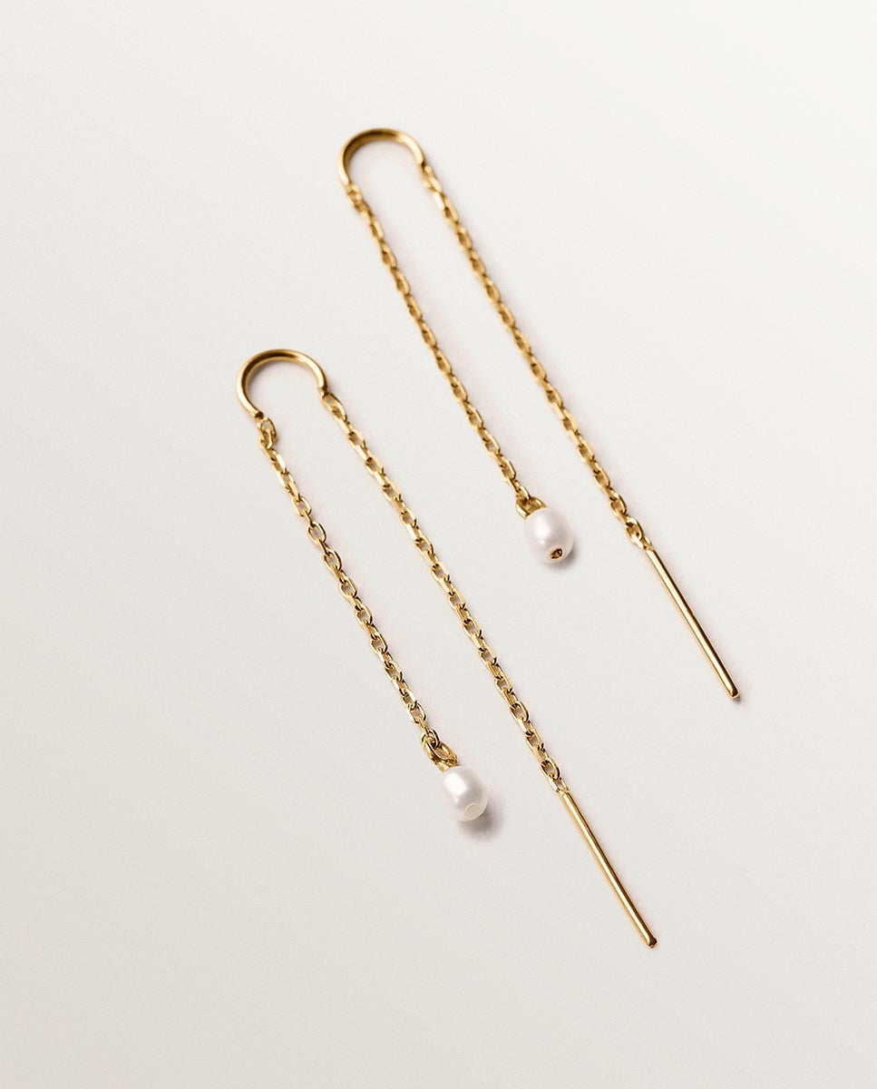 NovoUNO de 50Brincos Compridos Banhados a Ouro 18k com Corrente Comprida e Detalhe de EsferaAdicionar