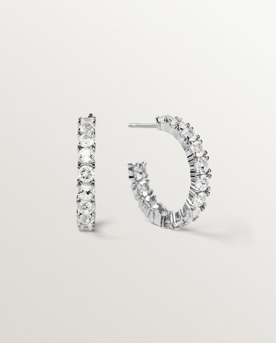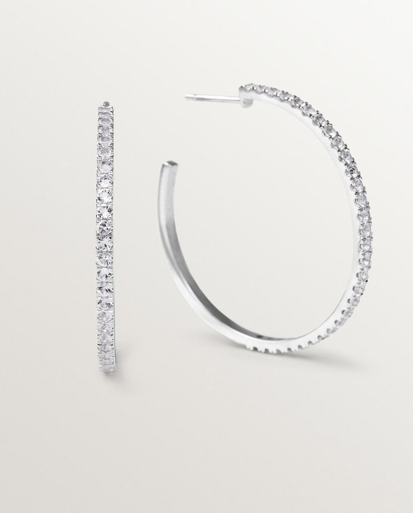 AristocrazyBrincos Grandes de Prata Banhada em Ouro Amarelo de 18k, Topázios Brancos e Forma de CoraçãoAdicionar