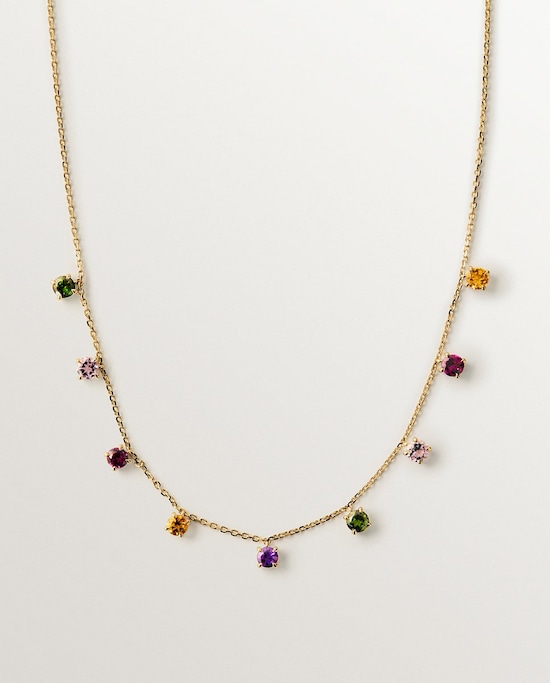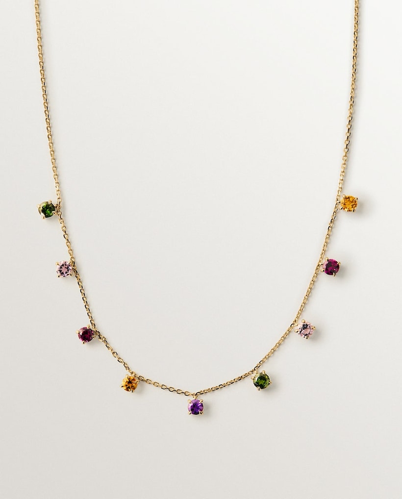NovoAristocrazyColar de Ouro Amarelo de 9k com Ametistas Rosa e Negras, Turmalinas Verdes, Quartzo Citrino Laranja e RodolitosAdicionar