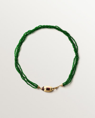NovoAristocrazyColar Banhado em Ouro Amarelo com Missangas de Cristais Verdes e Forma de Escaravelho com Cristais VermelhosAdicionar