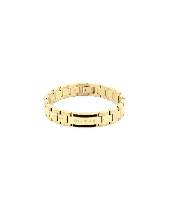 Pulseira de Couro em Preto com Fecho Banhado a Ouro 18k
