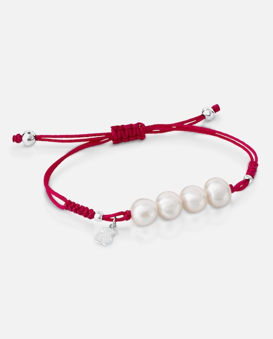 TousPulseira de Cordão em Castanho com Banho de Ouro 18 Kt Sobre Prata e Pérolas Cultivadas com NósAdicionar