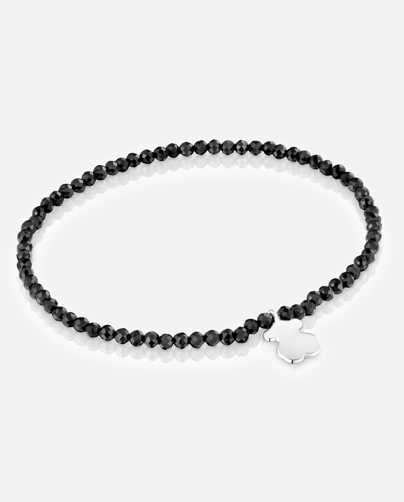 Pulseira com Charms Motivos Elástica com Espinelas e Urso de Prata