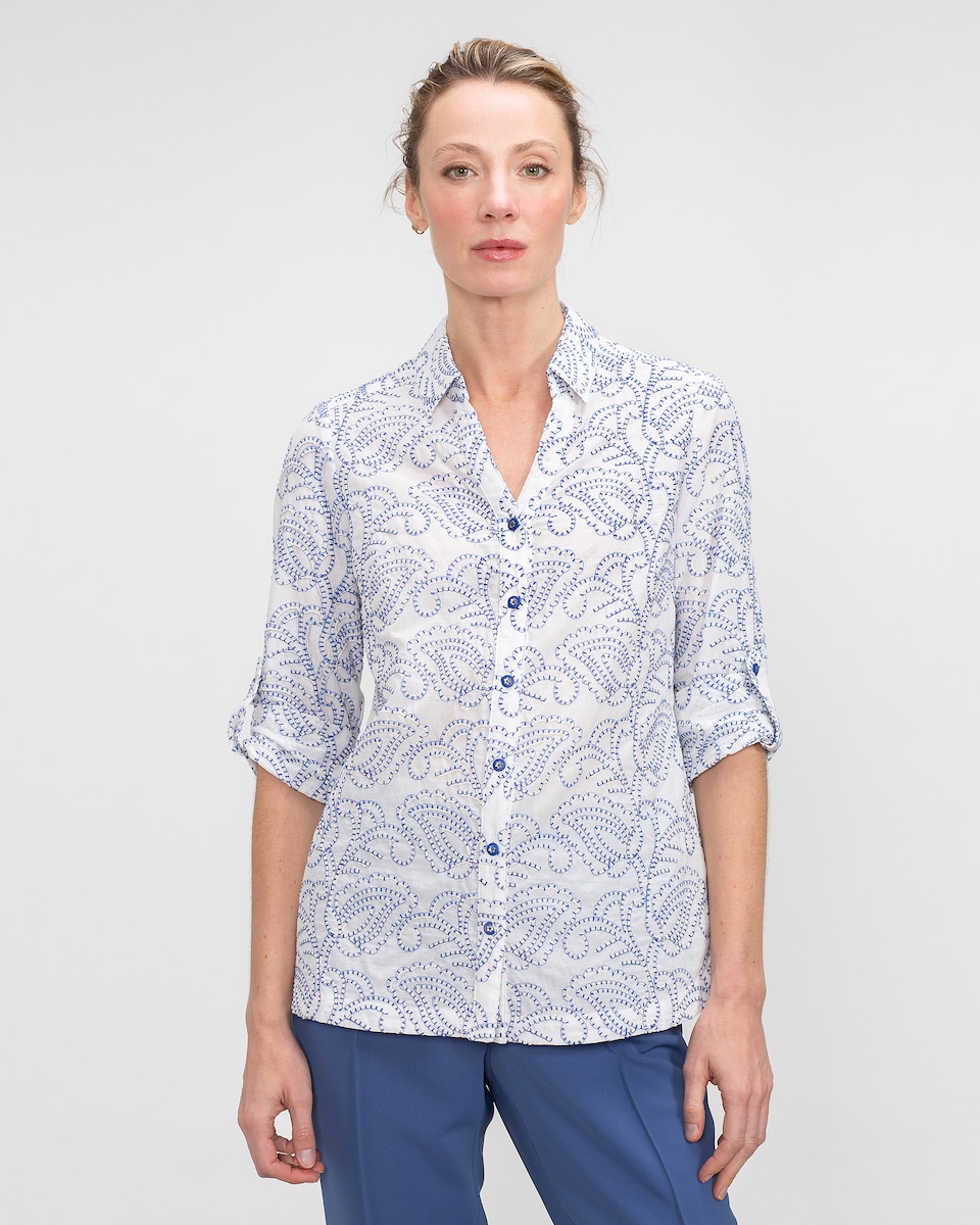 Camisa com Gola Panadero e Bordado Suíço