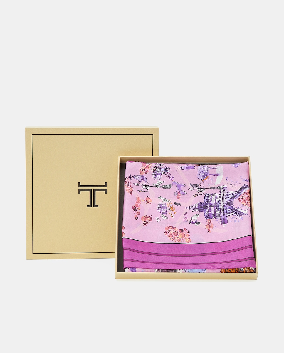 Lenço de Sarja e Seda com Estampado Roma