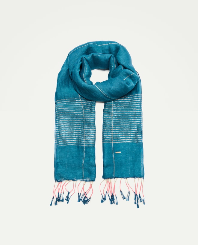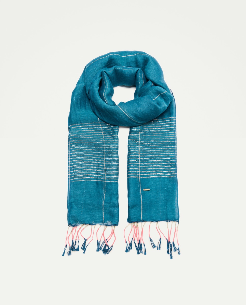Écharpe de Linho às Riscas de Fio Metalizado