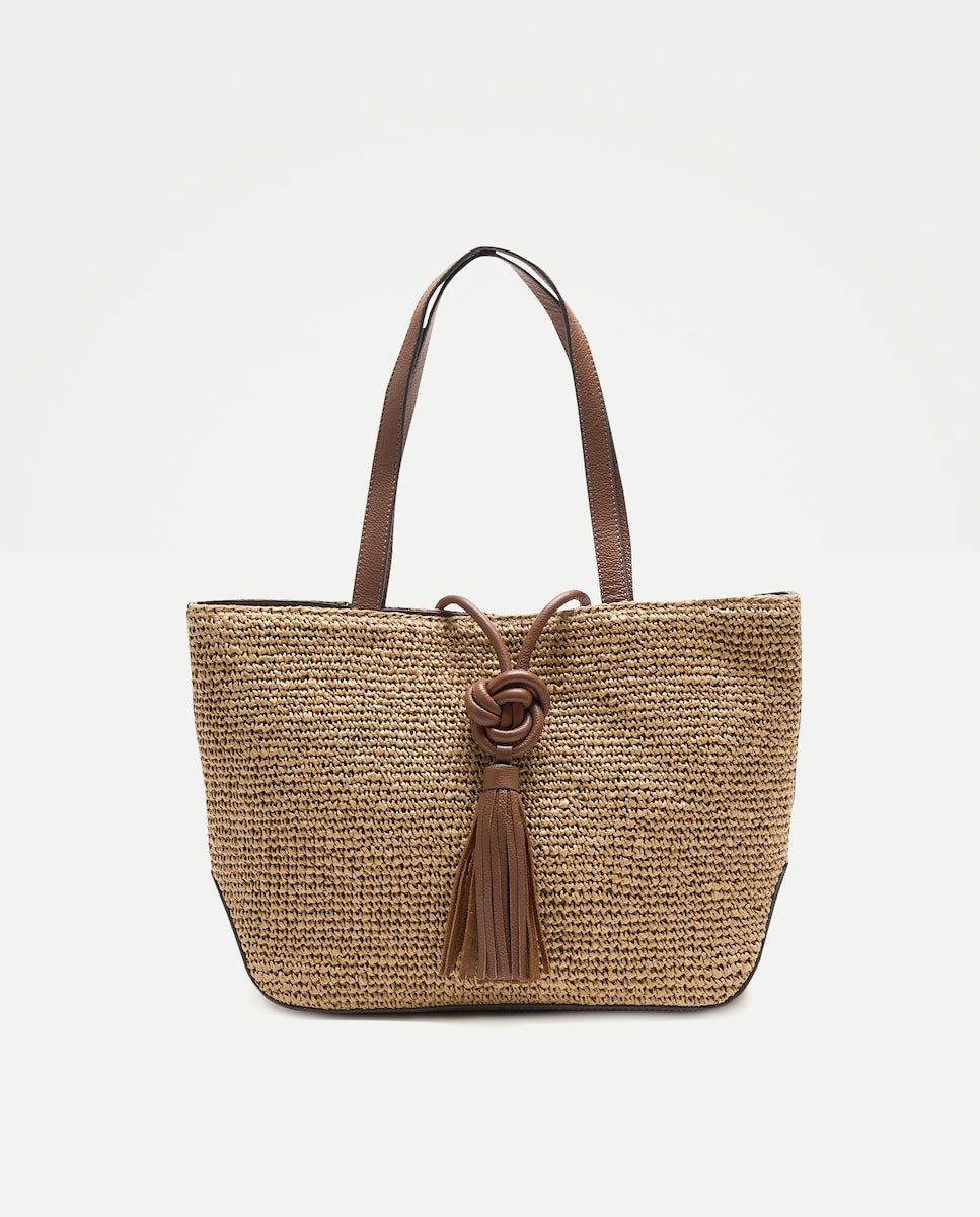 Mala Shopper de Ráfia e Pele com Borla