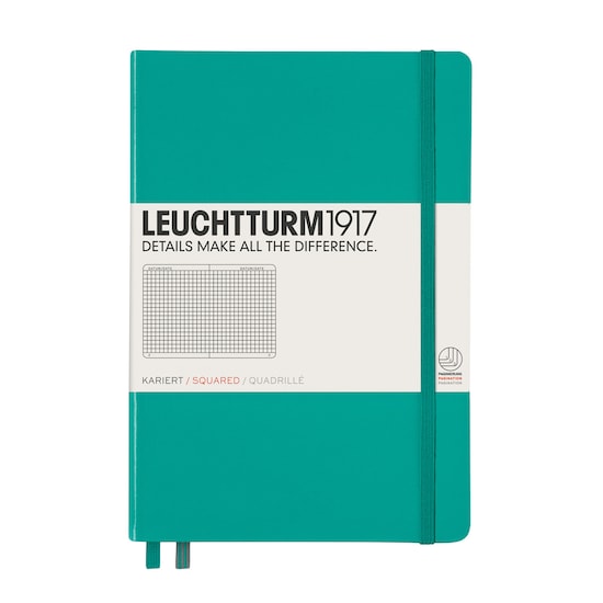 Caderno de notas A5 Capa dura Quadriculado 5 x 5 mm Leuchtturm1917 esmeralda