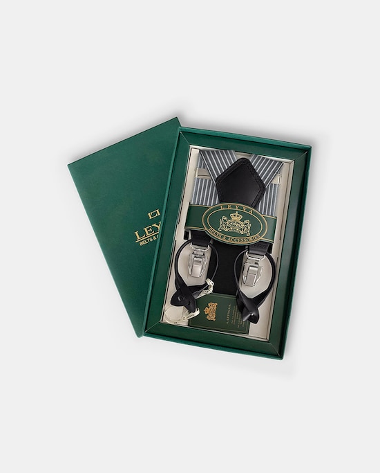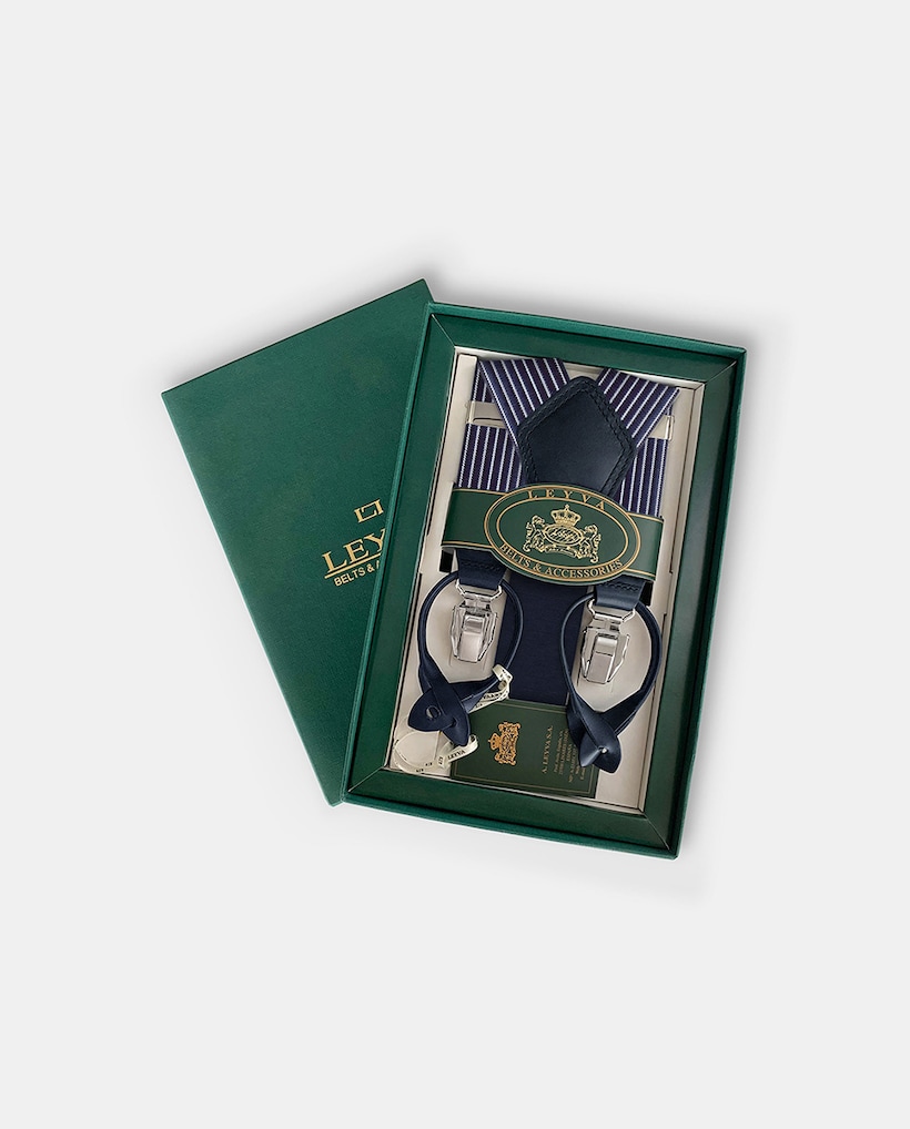 Suspensórios elásticos azuis com pontilhado de jacquard vermelho-branco
