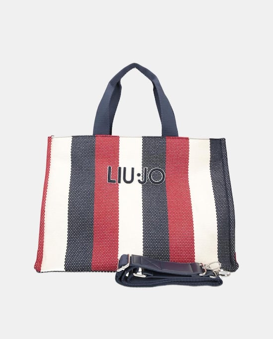 Mala em Tecido às Riscas Combinada com Logótipo Grande