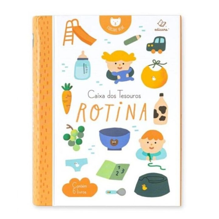 Dentro desta caixa com tampa magnética estão 6 pequenos livros cartonados, desenhados especialmente para mãos pequeninas. As ilustrações temáticas destes dicionários por imagens sobre o que faz parte da vida habitual das crianças, no fundo, a sua rotina, tornam-nos ideais para estimular as primeiras aprendizagens.