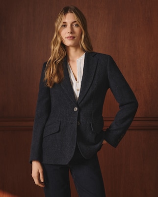 Blazer de Lã com Padrão Espinha de Peixe e Cotoveleiras