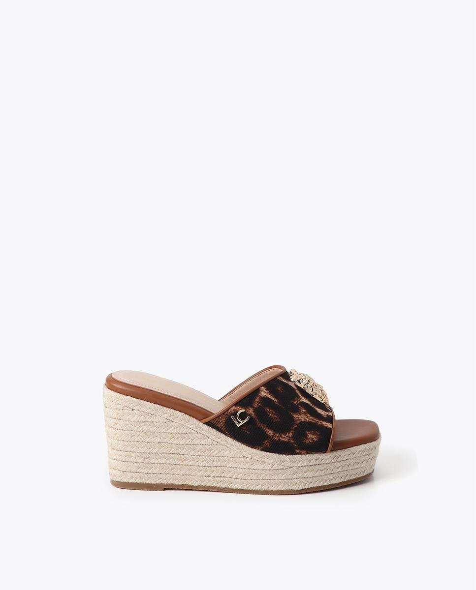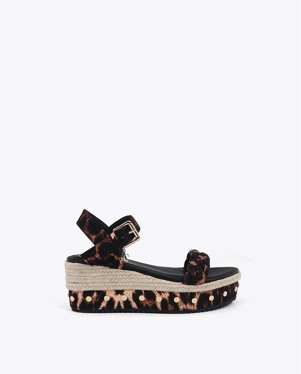 Sandálias de Cunha Animal Print com Detalhe Metálico