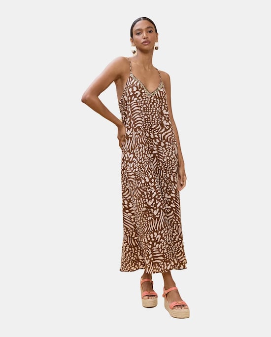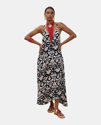 Vestido Comprido de Alças com Estampado de Palmeiras