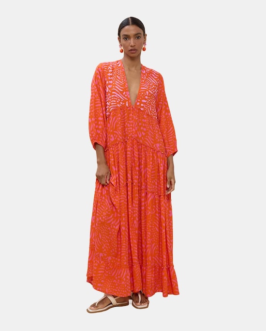 Vestido Comprido Estampado com Manga Comprida
