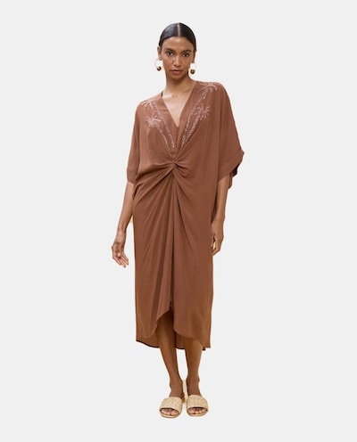 Vestido Comprido de Alças com Estampado de Palmeiras