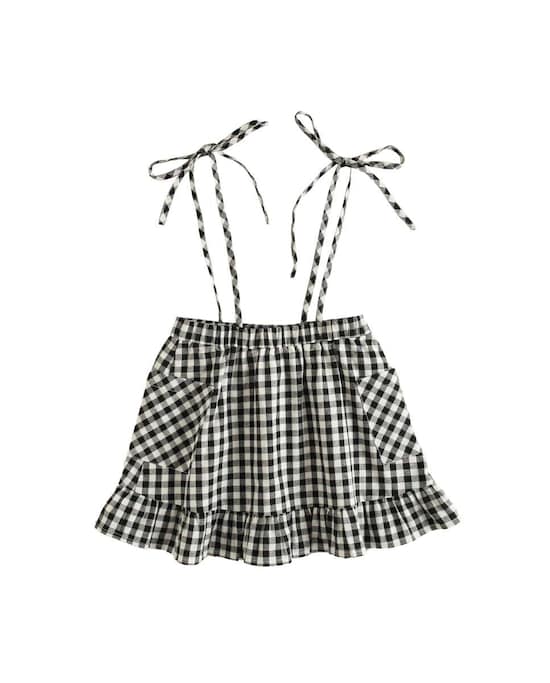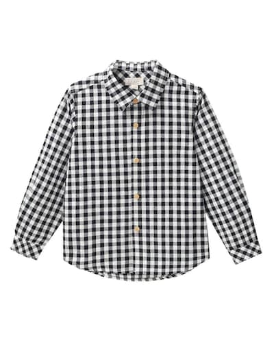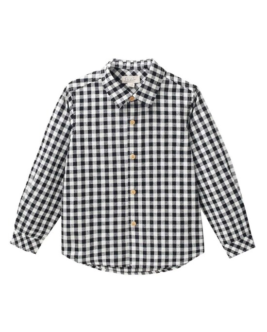 Camisa Infantil de Manga Comprida em Vichy em Branco e Preto