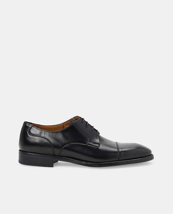 Sapatos de Atacadores com Pala Lisa, Sola de Borracha e em Pele