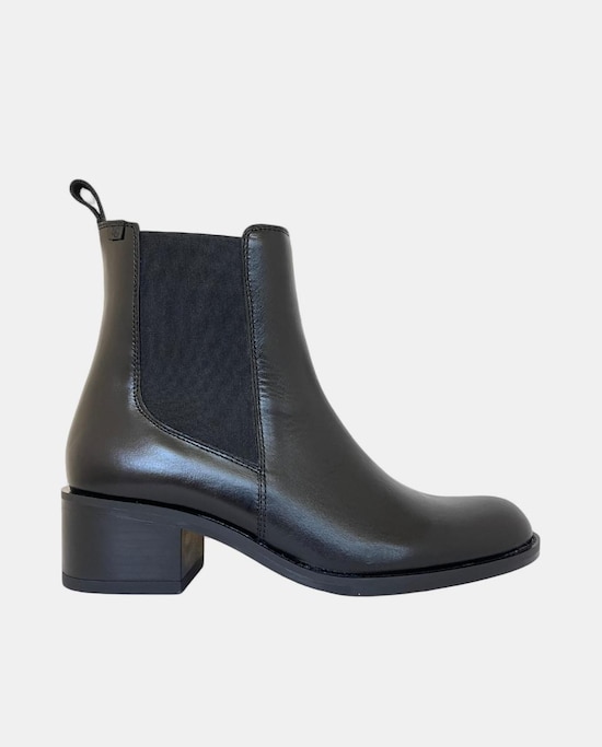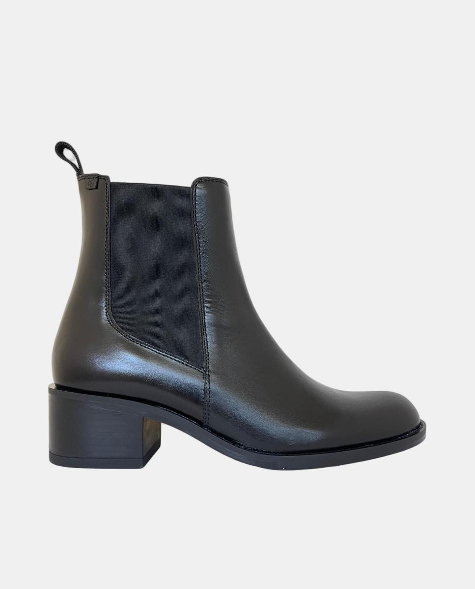 Botins Tipo Chelsea com Salto de Bloco e em Pele
