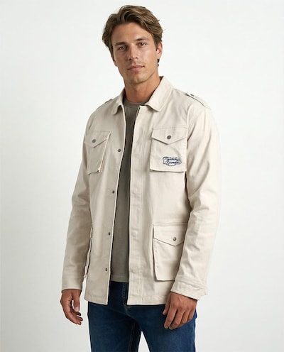 Casaco Sahariana com Fecho Zip e Bolsos com Detalhe Bordado